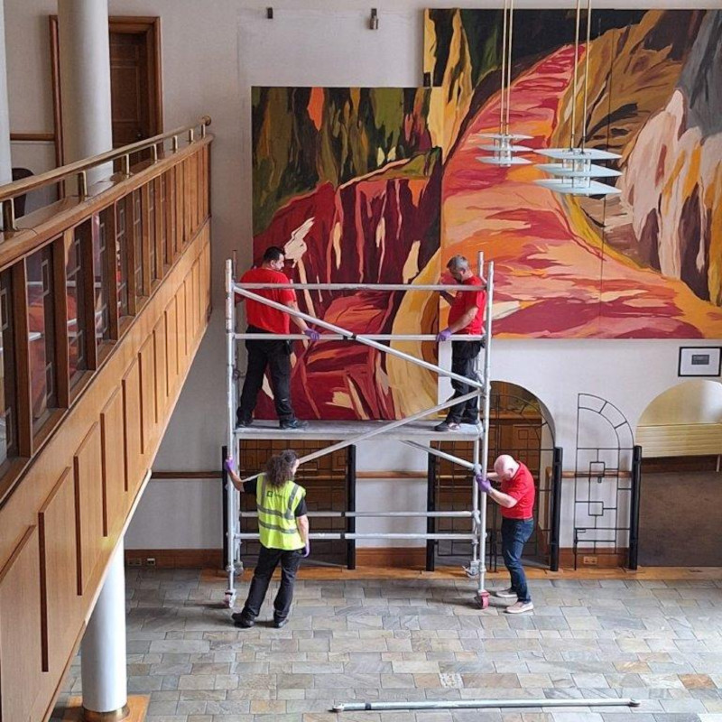 The piece consisted of three framed sections (1850mm x 3200mm), mounted three metres high. After a detailed risk assessment, the WTS Project Manager identified a mobile scaffold tower as the safest removal method.