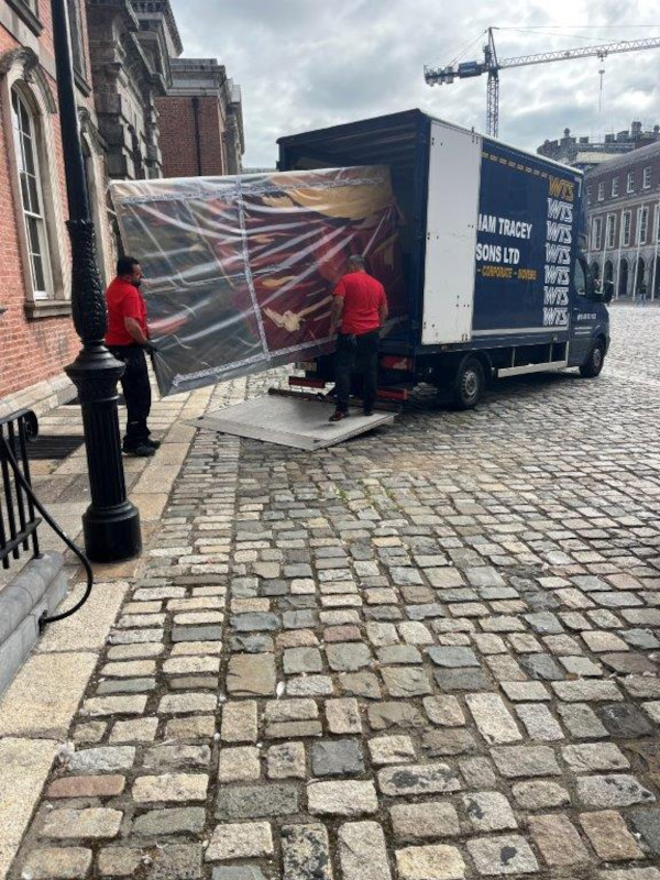 William Tracey & Sons (WTS), part of the Cronin Group, were appointed by the OPW Art Division to remove and relocate a large oil-on-canvas artwork from Dublin Castle to OPW storage facilities, supporting refurbishment works ahead of Ireland’s 2026 EU Presidency.