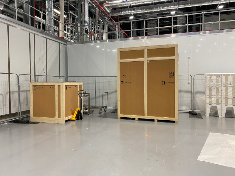 Cronin Group successfully delivered the safe rigging, export packing, and crating of highly sensitive Single Use Mixer (SUM) equipment for a leading pharmaceutical facility in Dublin. The project was completed on time, with full compliance to international shipping standards and zero damage to equipment.